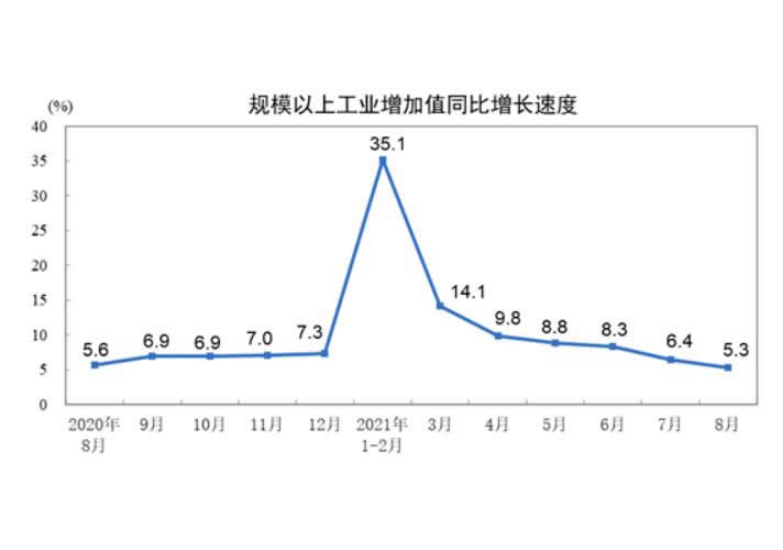 8月份,規(guī)模以上工業(yè)增加值同比實(shí)際增長(zhǎng)5.3%(以下增加值增速均為扣除價(jià)格因素的實(shí)際增長(zhǎng)率),比2019年同期增長(zhǎng)...