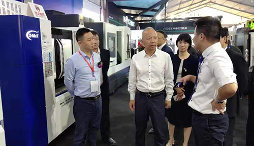 開展天,浙江省玉環市委書記、市長吳才平蒞臨震環機床的展位現場,對企業進行了親切的慰問工作。震環機床總經理金翼對吳才平書記一行人的來訪表示熱烈歡迎,并進行了熱情的接待。