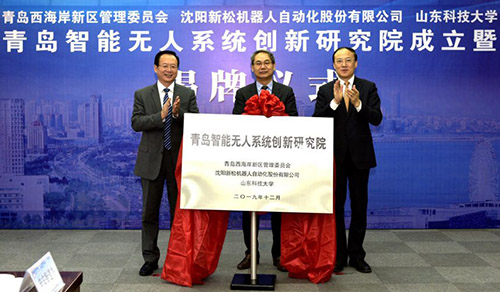 12月25日上午,由青島西海岸新區管委、沈陽新松機器人自動化股份有限公司、山東科技大學三方聯合共建的青島智能無人系統創新研究院成立揭牌儀式在青島市西海岸新區舉行。