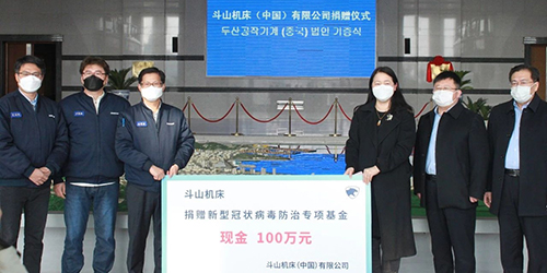 2月11日,斗山機床(中國)有限公司向煙臺開發區管委捐贈100萬元現金,用于對口支援當前新型冠狀病毒防治的工作, 為取得疫情防控阻擊戰的勝利貢獻自己的一份力量。
