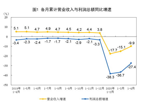 隨著統籌疫情防控和經濟社會發展各項政策措施逐步落實落地,經濟社會秩序進一步恢復,工業企業產銷加快,利潤狀況顯著改善,4月份,工業企業利潤降幅大幅收窄。但是1—4月份累計看,工業利潤降幅依然明顯,企業盈利形勢仍不容樂觀。