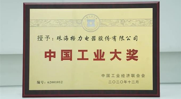 格力獲第六屆中國工業大獎