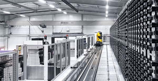 六臺(tái)NHX 4000臥式加工中心和48工位托盤(pán)系統(tǒng)組成寬度超33m的自動(dòng)化生產(chǎn)系統(tǒng)。該系統(tǒng)還包括多達(dá)4,000刀位的刀庫(kù)。