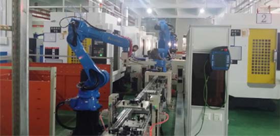 由沈陽飛機工業集團有限公司、沈陽航空產業集團、沈陽航空制造有限公司、華中數控等企業合作建設的沈陽航空復雜結構件智能制造生產基地,是國內航空航天領域首條全部應用全國產高檔數控設備的智能制造生產線,該基地主要加工航空航天復雜零件。整條產線機床設備共六十余臺,其中高檔五軸設備四十余臺,絕大部分配置華中8型數控系統。該項目的主要技術特點是“三國六化一核心”,華中8型數控系統的高速、高精、智能化功能實現了綜合應用。