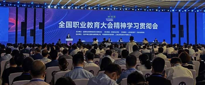 5月21日,2021年全國職業高等院校校長聯席會議在濟南召開全國職業教育大會精神學習貫徹會,教育部職業教育與成人教育司、山東省教育廳、濟南市委領導出席大會開幕式,來自全國數百所高職院校領導參加本次會議。期間,2021年全國職業教育科技創新成果與智能實訓裝備技術展覽會于5月20日至22日在山東國際會展中心舉辦,華中數控在本次展會上展出了系列智能制造人才培養方案和產品。
