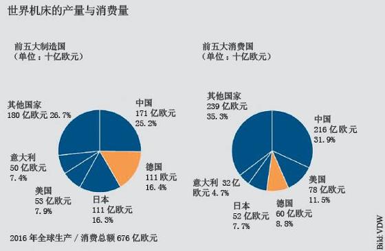 中國以216億歐元的消費(fèi)總量,目前成為數(shù)控機(jī)床產(chǎn)品的最大消費(fèi)國(產(chǎn)量減去出口量加上進(jìn)口量)。德國機(jī)床產(chǎn)品全球出口冠軍。