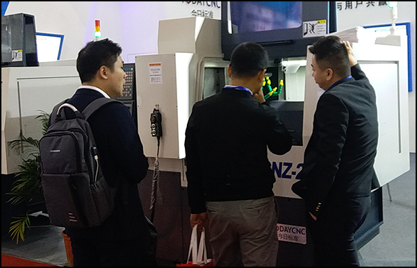 在開展期間,眾多國內外高精尖產品同臺競爭,全面展示智能制造新風貌,也呼應著本次“東莞國際金屬加工展“工業強基與智能制造”的主題。今日標準作為一家專注于生產數控走心機的生產廠家,用“匠心”表達出了企業對于數控走心機的專注。只見今日標準每臺機床前都人氣爆棚,參展觀眾絡繹不絕,贊譽掌聲接連不斷。今日標準的工作人員耐心接待每一位到訪觀眾,細心介紹產品性能;操作人員熟練展示產品的加工魅力,詳細解說每一個加工步驟。