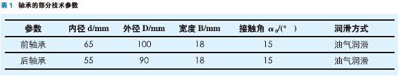 電主軸在高速條件下,軸承滾子與滾道的滾動(dòng)摩擦、由陀螺力矩產(chǎn)生的滑動(dòng)摩擦為軸承發(fā)熱的主要原因。該電主軸單元采用的是角接觸陶瓷球軸承,其部分技術(shù)參數(shù)由表1所示。