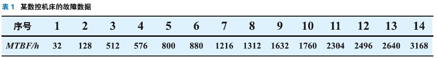 表1所示是收集的一組某數控機床的故障數據(MTBF值)。