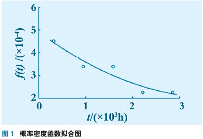 在Matlab環境下采用極大似然法對故障數據進行概率密度函數擬合,其概率密度擬合圖如圖1 所示。