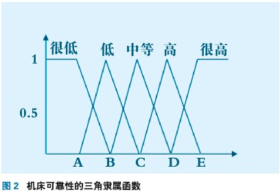 采用模糊理論對機床的可靠性進行模糊評價,建立機床的三角隸屬度函數圖,如圖2所示。