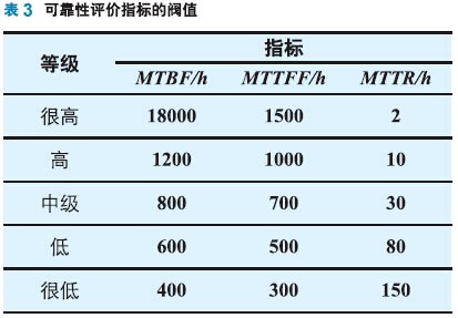 根據國家科技重大專項和專家經驗確定各項指標的閾值,將各可靠性評價指標分為5個評判等級,如表3所示。