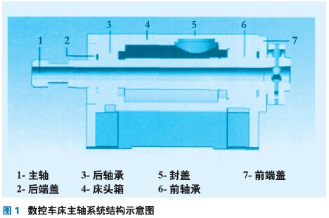 本文研究對象CK6136 數控車床主軸系統主要由主軸、前后角接觸球軸承、床頭箱、封蓋前后端蓋等部件組成,對于復雜結構在進行CAD建模時需要對模型進行適當的簡化。例如模型中的圓角和倒角以及對分析結果不造成很大影響的小孔就應該盡量省略,還有將鍵槽、螺紋孔、擋油孔均按實體處理等,在三維軟件UG6.0建立好主軸系統結構簡圖(半剖視圖)如圖1所示,同時設置好UG6.0和ANSYS Workbench 12的無縫連接。