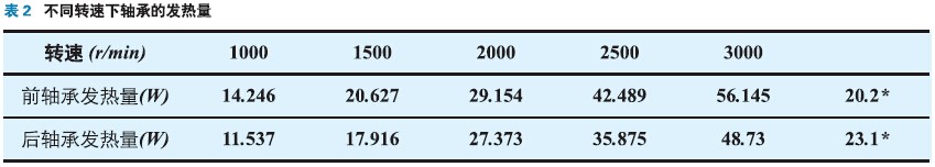 對于數控車床主軸系統熱源分析本文主要考慮前、后軸承的摩擦發熱,而忽略電動機發熱、切削熱發熱對主軸系統的影響,根據參考文獻主軸軸承熱源的計算公式如下: