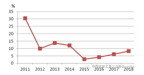 圖1 2011-2018年機床工具行業主營業務收入增長率