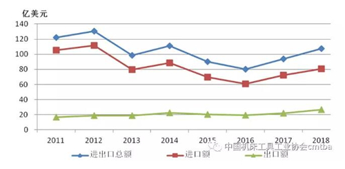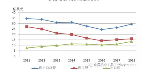 圖4 2011-2018年金屬切削機床進出口情況