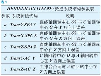 機床自身的制造和裝配誤差,影響著機床的幾何精度,同時,對于五軸數控機床而言,誤差造成回轉軸心不重合,降低了五軸聯動精度,不能夠得到理想的零件加工精度。幾何誤差補償的方法是在不改變數控機床結構和控制系統的機床上,通過對機床運動誤差源分析、建立數學模型和計算,將機床的空間定位誤差實時地反饋到控制系統,實現誤差的修正,從而提高五軸數控機床的加工精度。