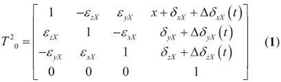 1)X 軸( 低序體2) 固連在床身上( 低序體0) ,綜合誤差變換矩陣T02 為: