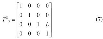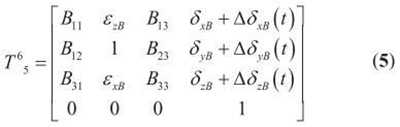 4)A 軸( 低序體5) 固連在Z 軸( 低序體4) 上,綜合誤差變換矩陣為T45 為: