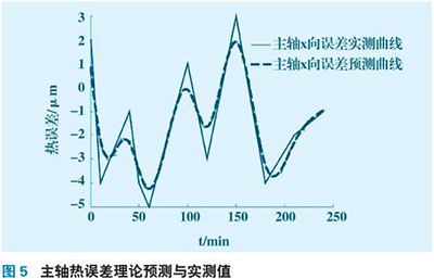 1) 利用多體運動學構建CGM4000 五軸機床綜合誤差模型,并對59 個誤差分量進行相應的解析。綜合機床各軸熱誤差產生的機理,提出了對主軸和進給軸熱誤差分量新的測量法: 5 點測量法和6 點測量法。大量實驗證明理論預測辨識曲線與實驗結果一致,主軸預測誤差范圍在0 ~ 2 μm 之間,進給軸預測誤差范圍在0 ~ 12 μm 之間。